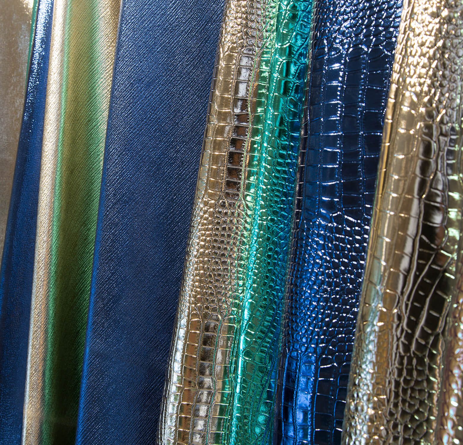 Specializzati nella produzione di pellami laminati su basi sia ovine che bovine, vantiamo più di 120 colori di lamina disponibili in “instant lamination”.
